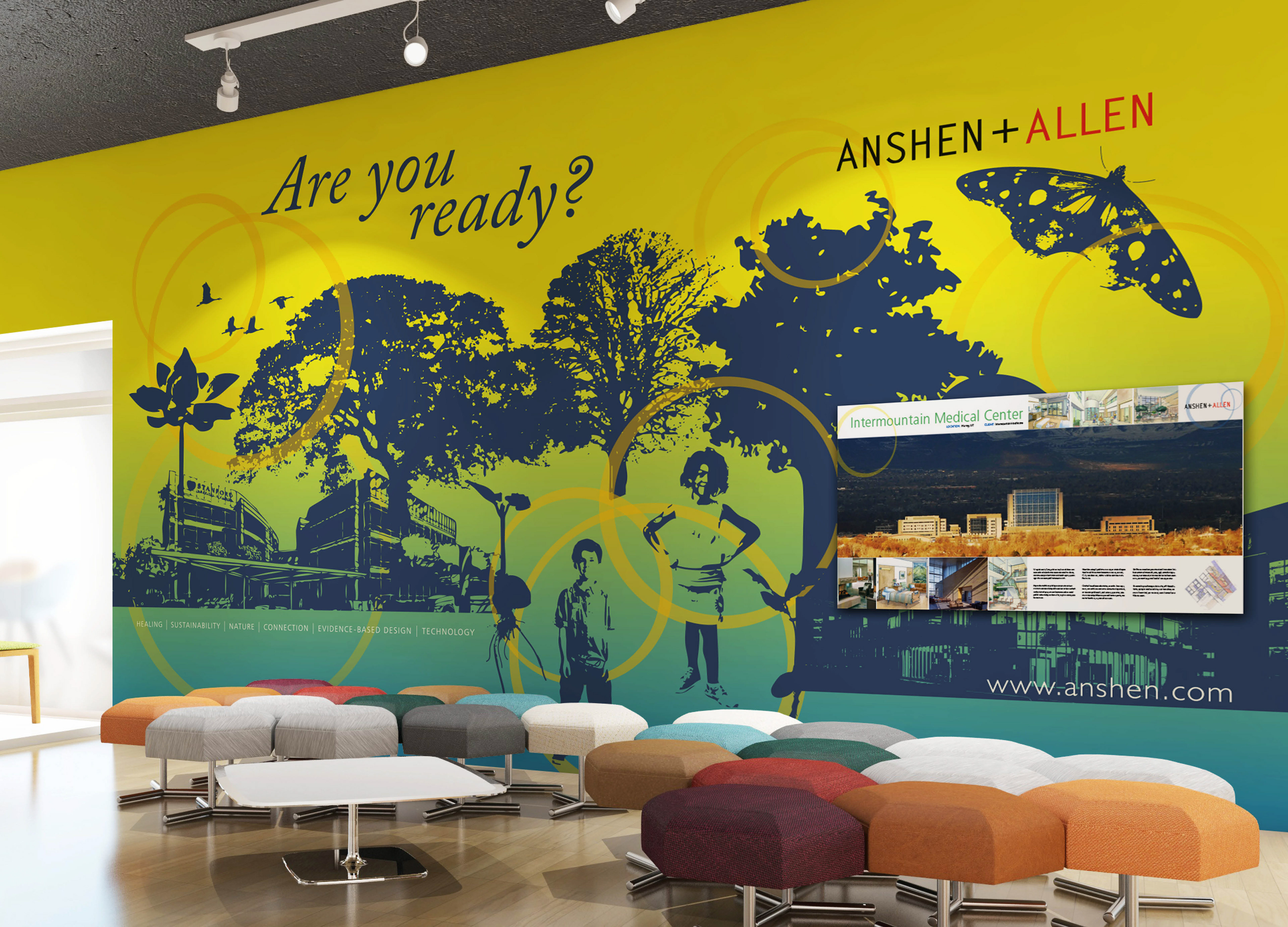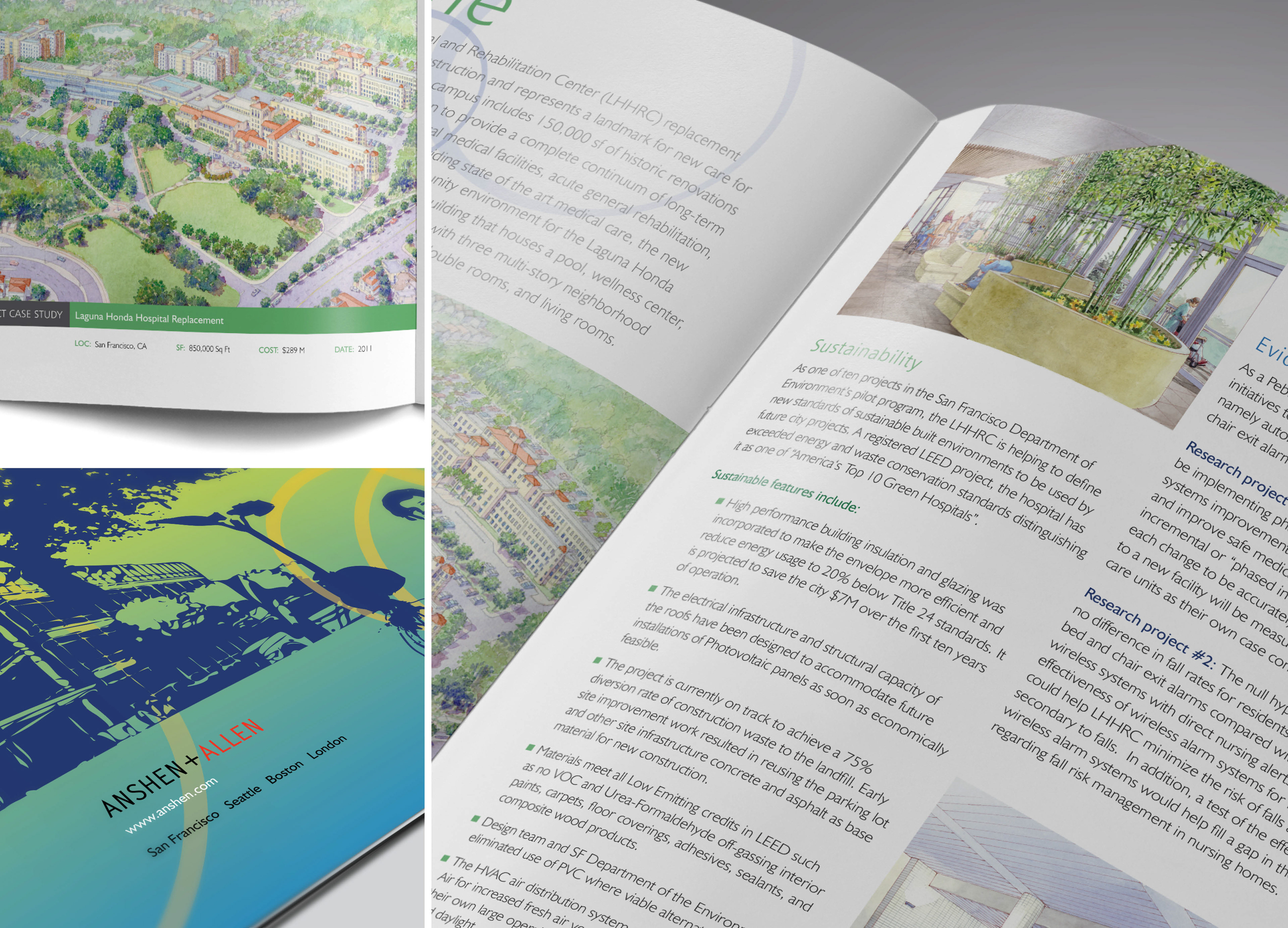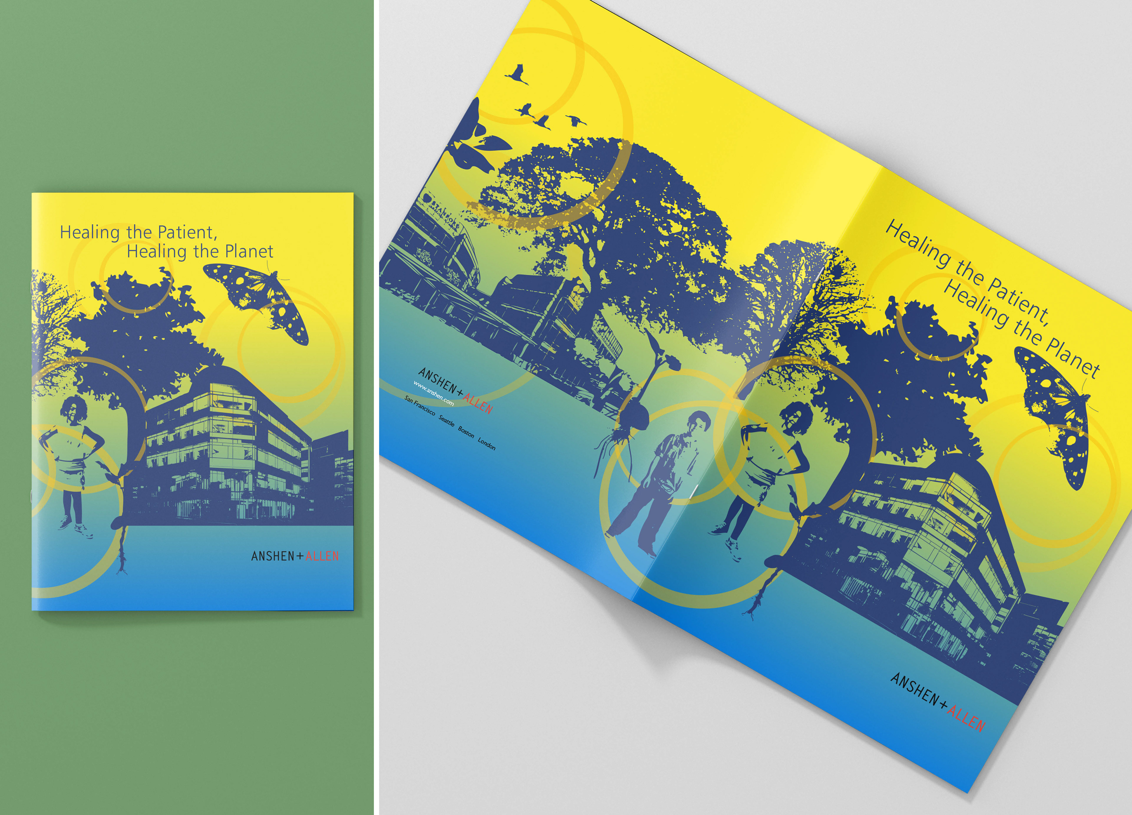 For a conference on sustainability and green architecture, I designed a brochure and environmental graphics. I crafted a striking illustration that incorporates elements from nature and Anshen + Allen's own buildings. The nature imagery communicates the environment, rebirth, sustainability and the future.