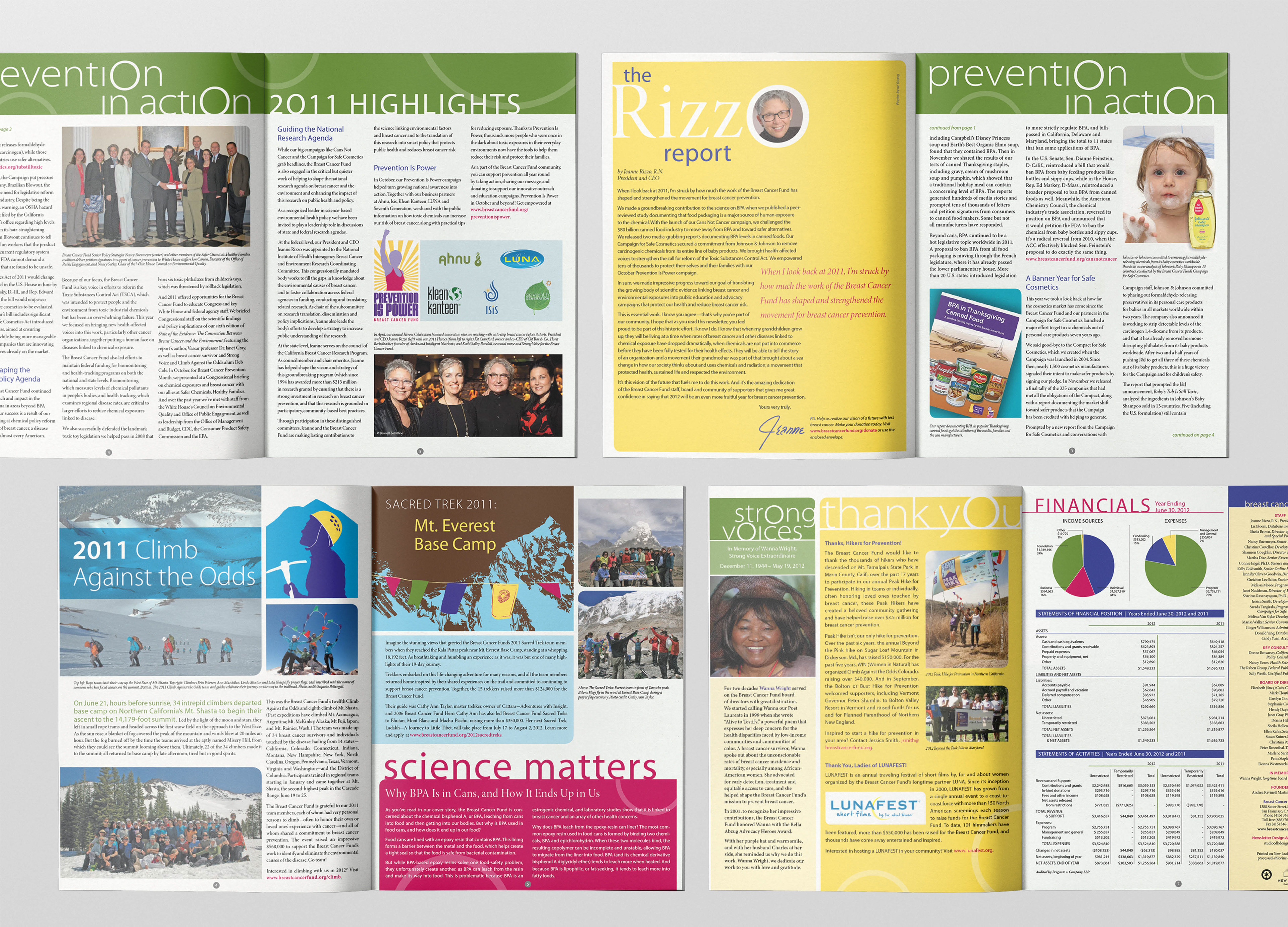 Spreads from interior of program. The sidebars of the program included a timeline of achievements accomplished by the Breast Cancer Fund over the past 20 years.