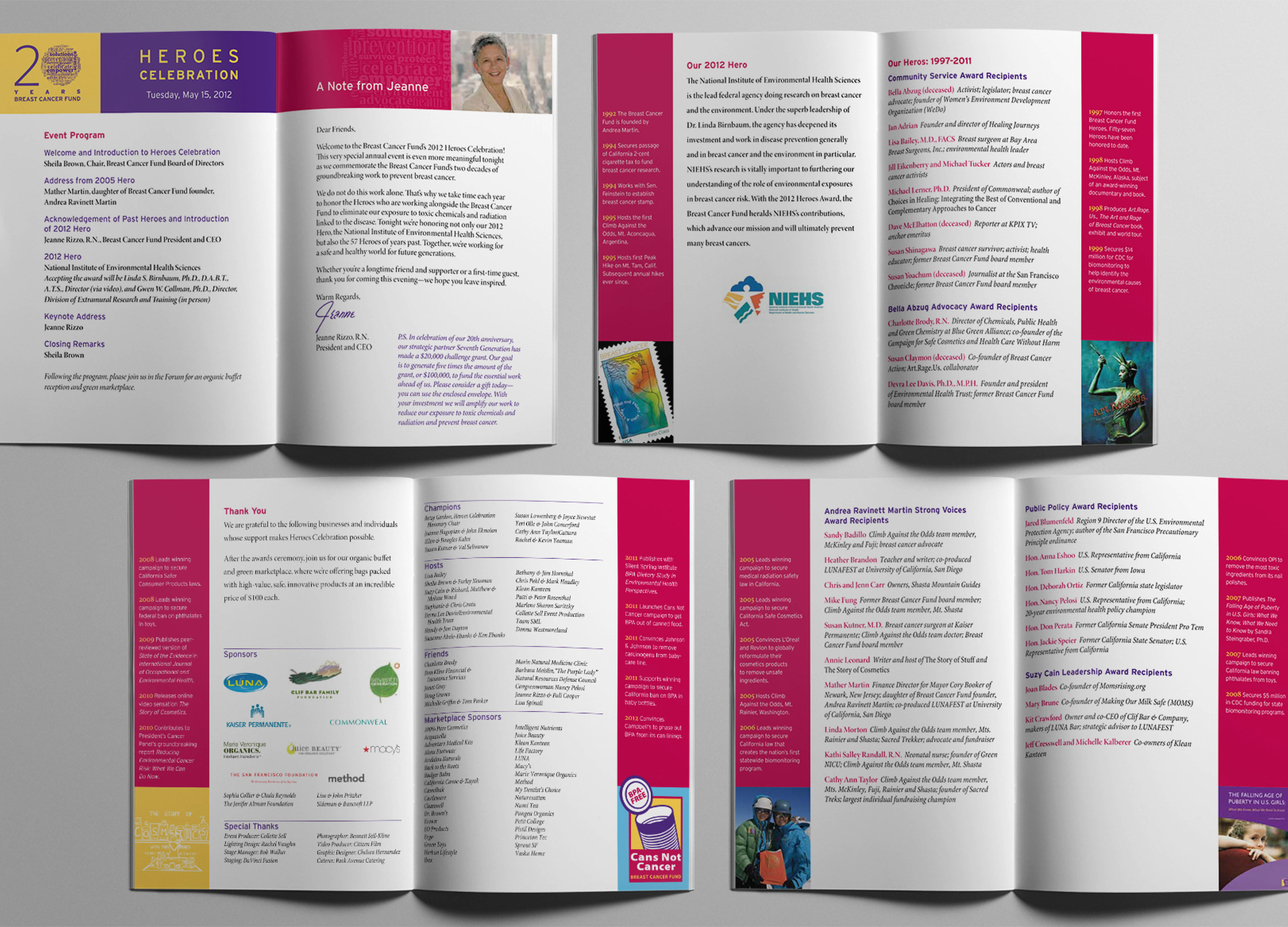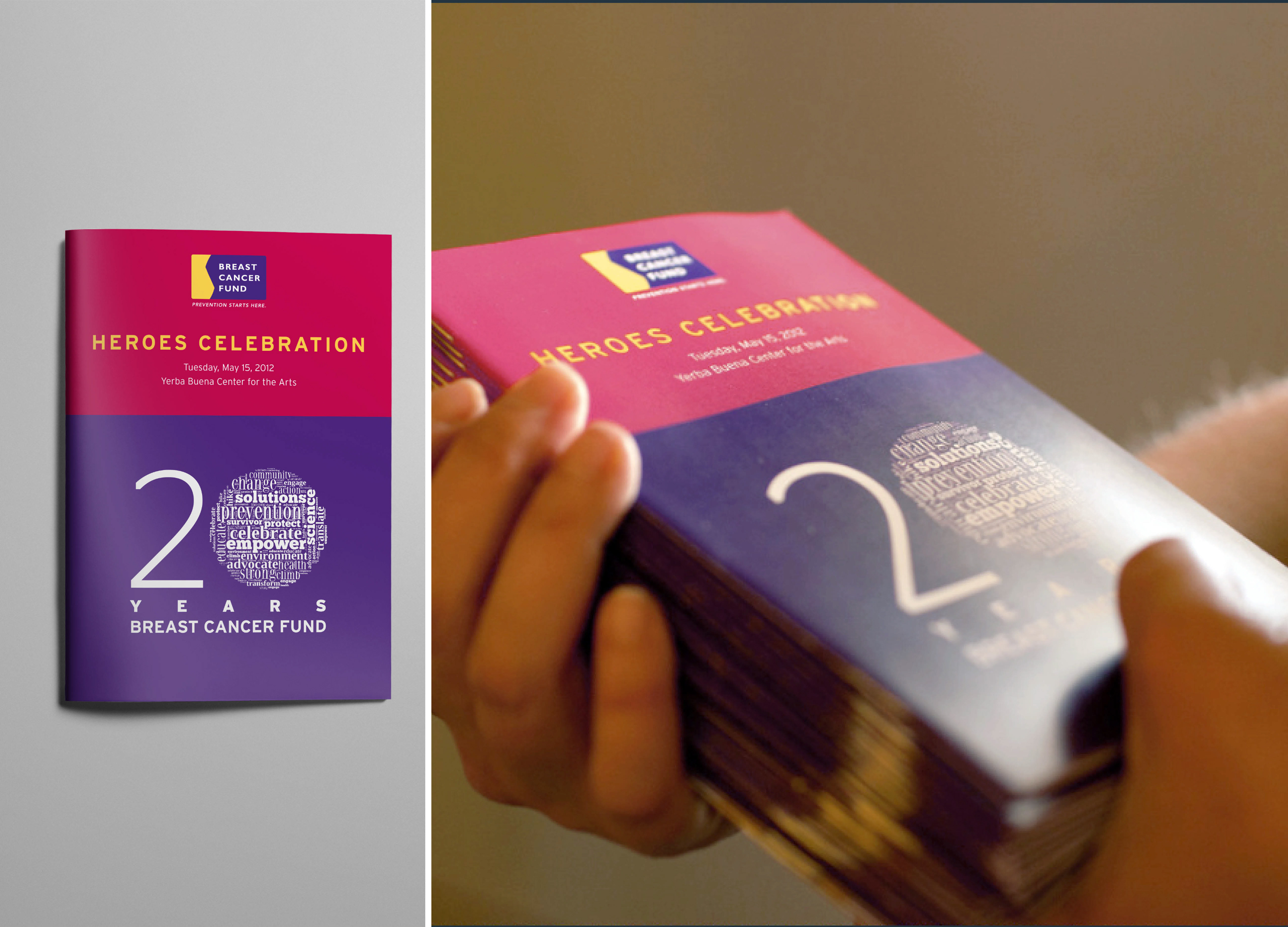 This piece is a keepsake program for the Breast Cancer Fund's annual Heroes Celebration.
