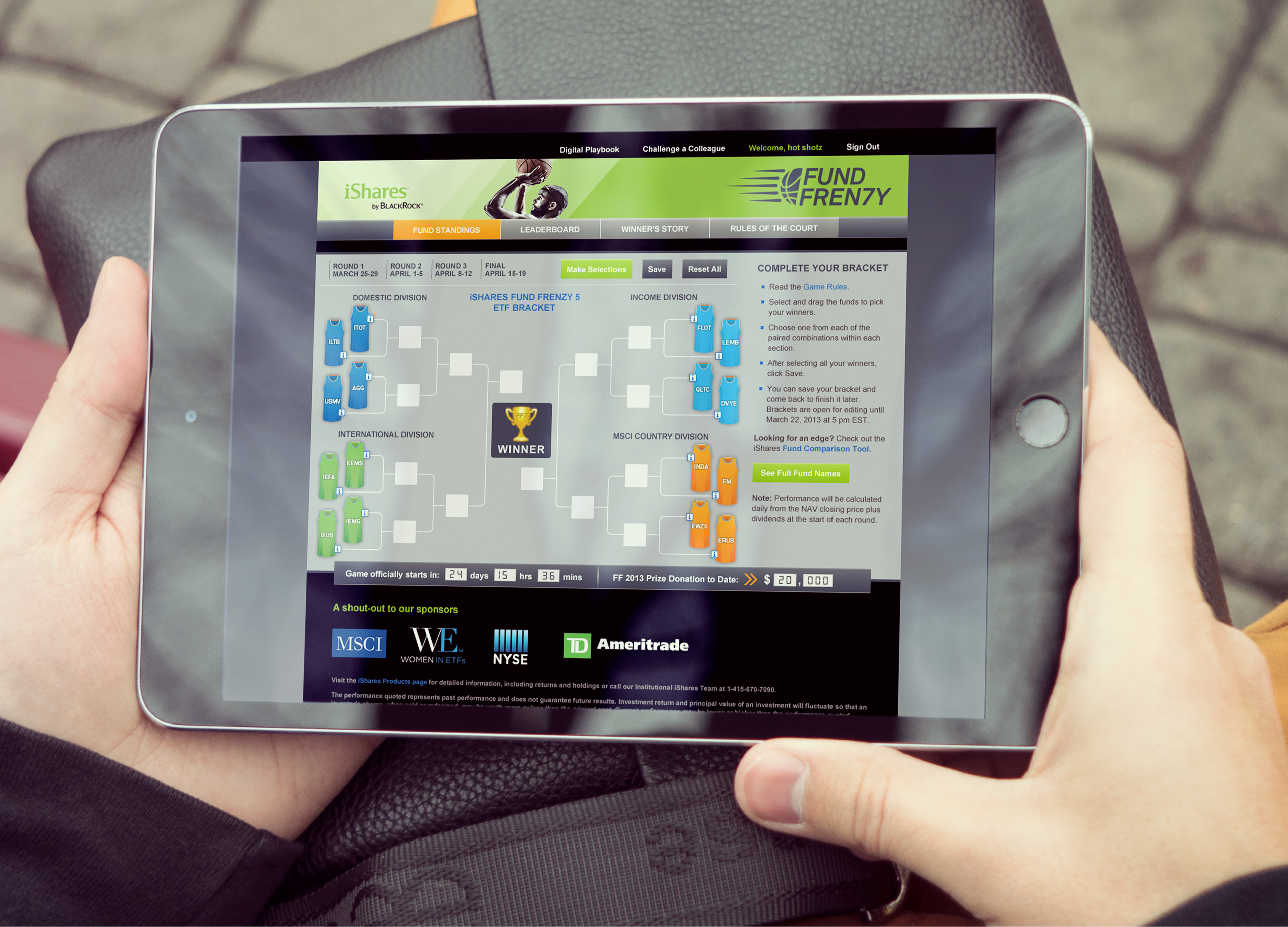 Main screen for Fund Frenzy. I worked with the web developers on the skinning of the elements.