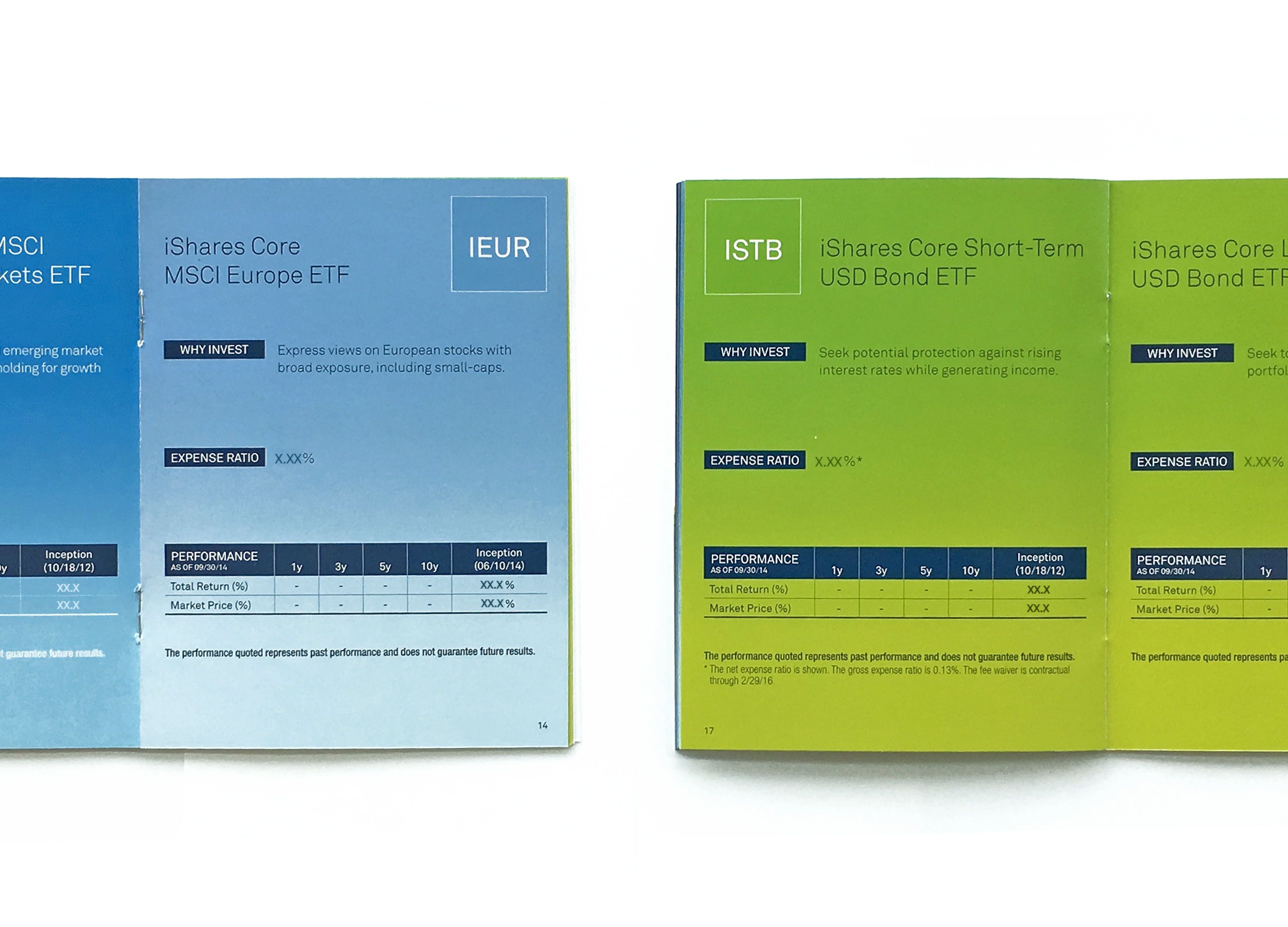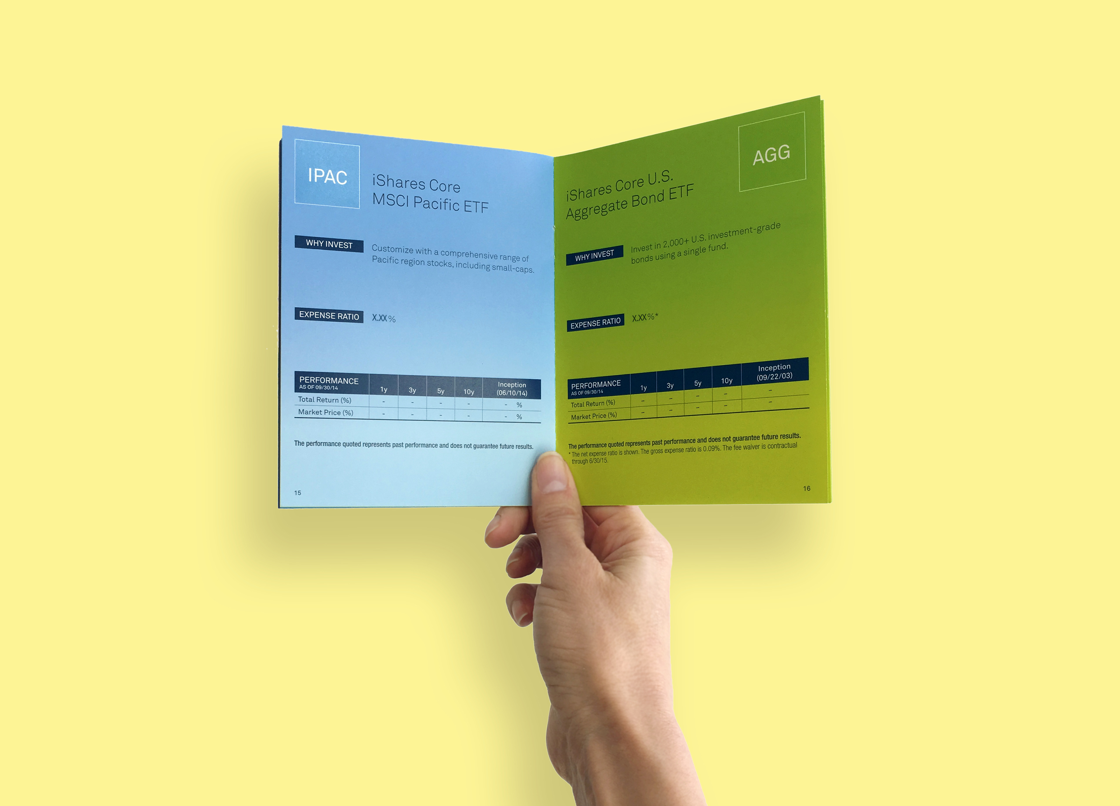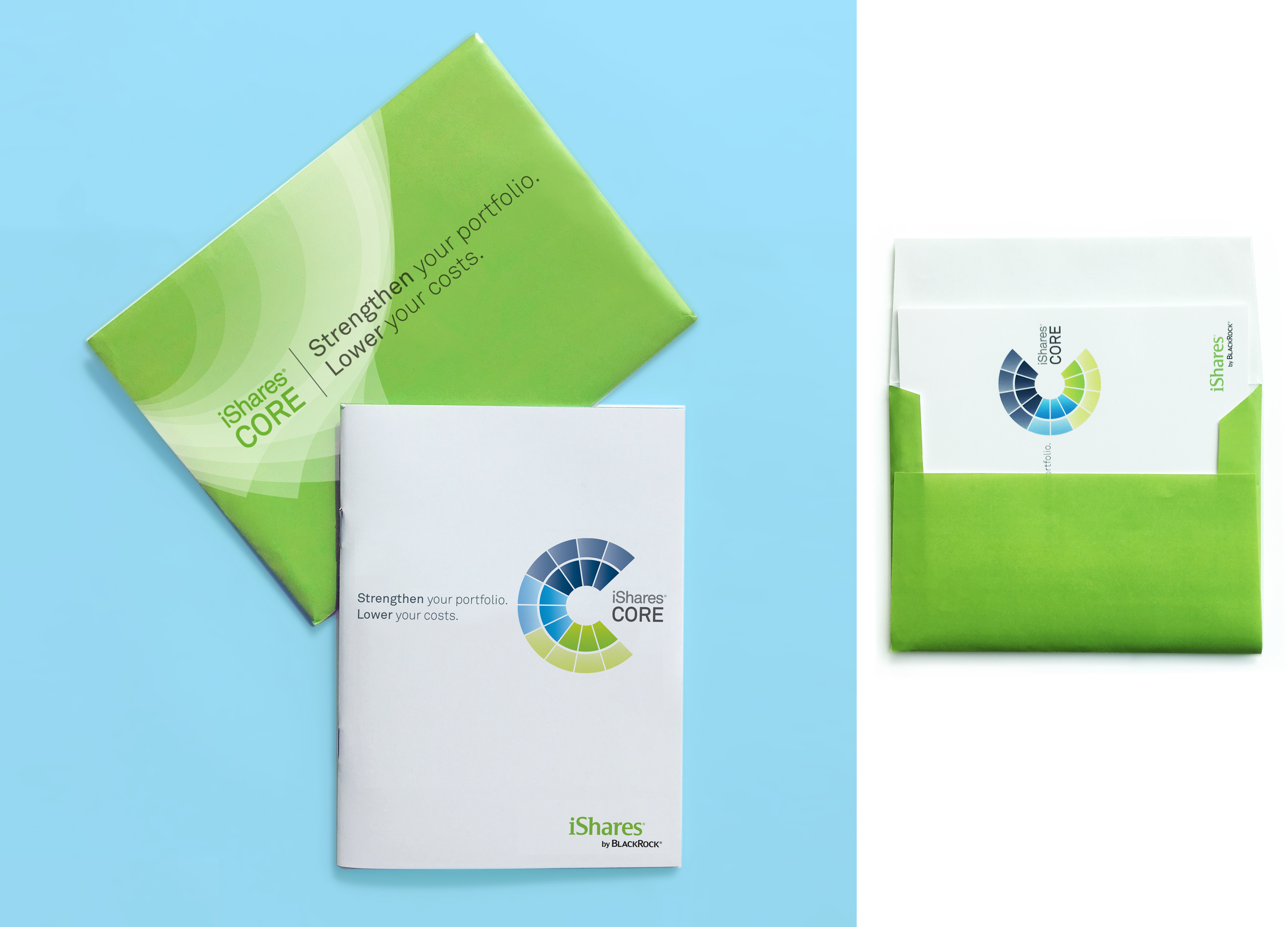 This guide was used in multiple direct mail campaigns as a quick reference for the iShares core products. The guide stood out from other client materials due to its 4.5” x 6” size and the key information was enhanced by the design, which made it fun and easy to navigate.